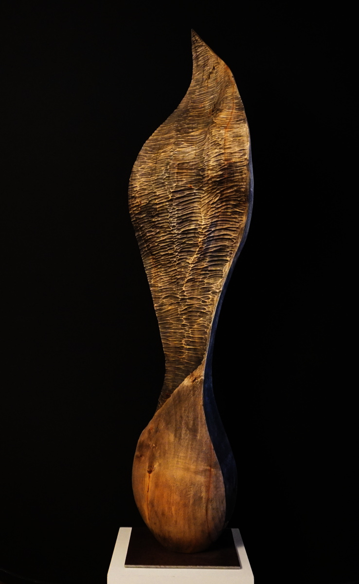 Mit präziser Formensprache verkörpert diese Skulptur die Schönheit und Kraft der Natur. Jedes Detail ist sorgfältig ausgearbeitet, um einzigartige Formen und Texturen zu schaffen, die das Auge fesseln. Die Verwendung von Eicheholz verleiht der Skulptur eine robuste und dennoch elegante Ausstrahlung.